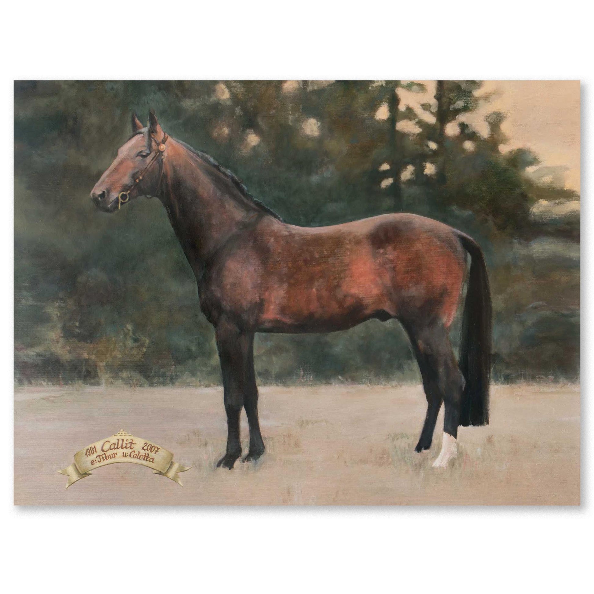Det värmländska varmblodet Callit. Världsmästare 1987 och årets häst 1987 och 1988. Original: olja på duk