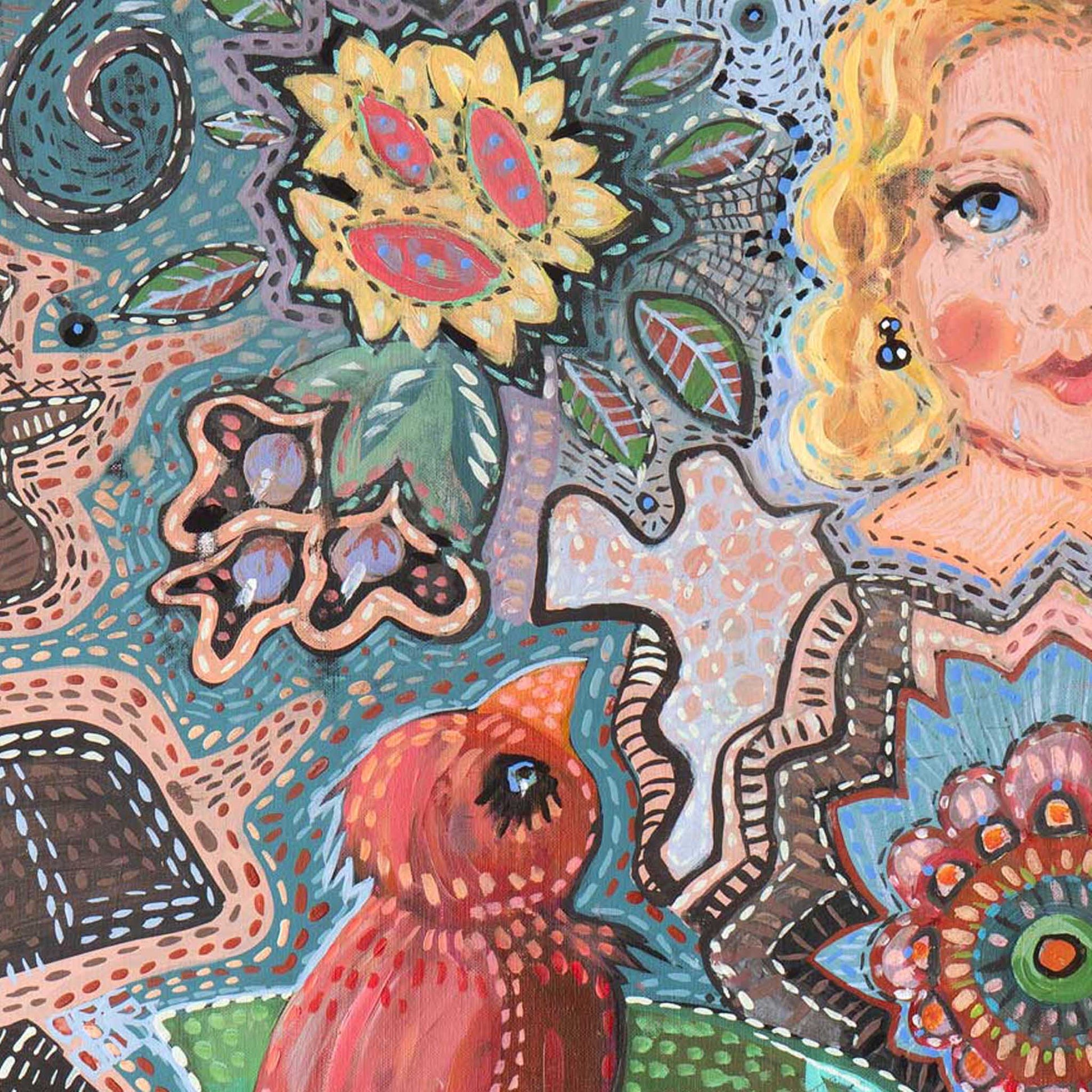 "Meditation Embroidery no 2" är en målning som är som ett konsthantverk i sitt uttryck. Otroligt arbetat och dekorativt måleri med spännande budskap gömt i "broderiet".